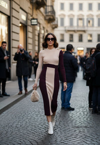 Elevate your wardrobe with the Ester Dress, a sophisticated knit garment that combines comfort with luxury. The precision-fitted silhouette accentuates your natural contours while distinctive metal detailing adds an element of refined elegance. Crafted from premium knit fabric, this dress transitions effortlessly from professional settings to evening occasions, embodying timeless sophistication with contemporary appeal.